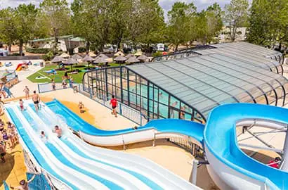 Votre mobil-home dans un environnement verdoyant, avec des parcelles spacieuses et des équipements haut de gamme. Profitez d’un espace aquatique avec piscines chauffées, toboggans et lagon artificiel, ainsi que d’un spa pour des moments de détente absolue.