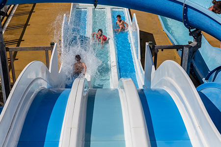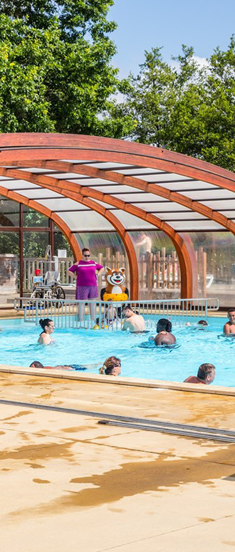 Le parc aquatique chauffé ravira petits et grands avec sa piscine extérieure, sa piscine couverte, ses toboggans et sa pataugeoire. Un bain à remous est également à disposition pour des moments de détente.