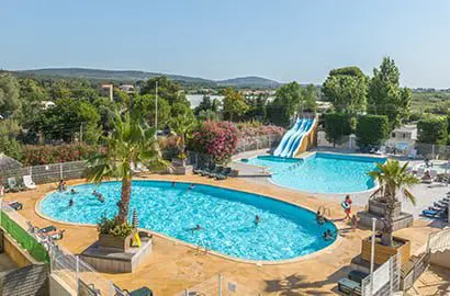 Un camping au sein d’un parc de 4 hectares proche de la plage et avec un bel espace aquatique.